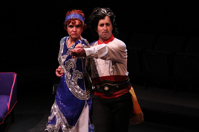 From Marisa Diotalevi as the tipsy, narcissistic “chaperone” to Arianna Movassagh as exquisitely hapless comic relief Kitty, from Sergio Antonio Garcia and Jason Kennedy as a perfectly matched pair of bumbling, acrobatic gangster/ chefs…to the play’s campy “deus ex machina”, the all white-clad Trix, the Aviatrix played with beneficent queenly glamour by Darius-Anthony Robinson, every character and performance adds a maraschino-topped, real whipped cream layer of pleasure to the production. Happy holidays! Get thee to Theatre Three for seasonal madcap celebratory full immersion.