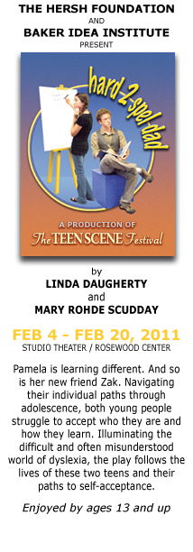 The Dallas based Baker Idea Institute in conjunction with Dallas Children’s Theater presents a groundbreaking, comprehensive Teen Scene Festival February 4-20 at its Rosewood Center on Skillman Road in Dallas. Cornerstones of the Festival are two dynamic professional dramatic productions that explore high profile issues of teen dating violence (don’t u luv me? by Linda Daugherty) and learning differences ( hard 2 spel dad by Linda Daugherty and Mary Rhode Scudday).