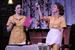 Lyric Stage’s production gets right to the heart of the piece, bringing its audience directly into the lives of everyday working people in northern California in the 1920’s with its humorous opening number “Ooh! My Feet”, sung with expressive ennui and bell-clear voice by Catherine Carpenter Cox as Cleo the waitress, the show’s comic relief lead and the romantic lead’s wisecracking sidekick.