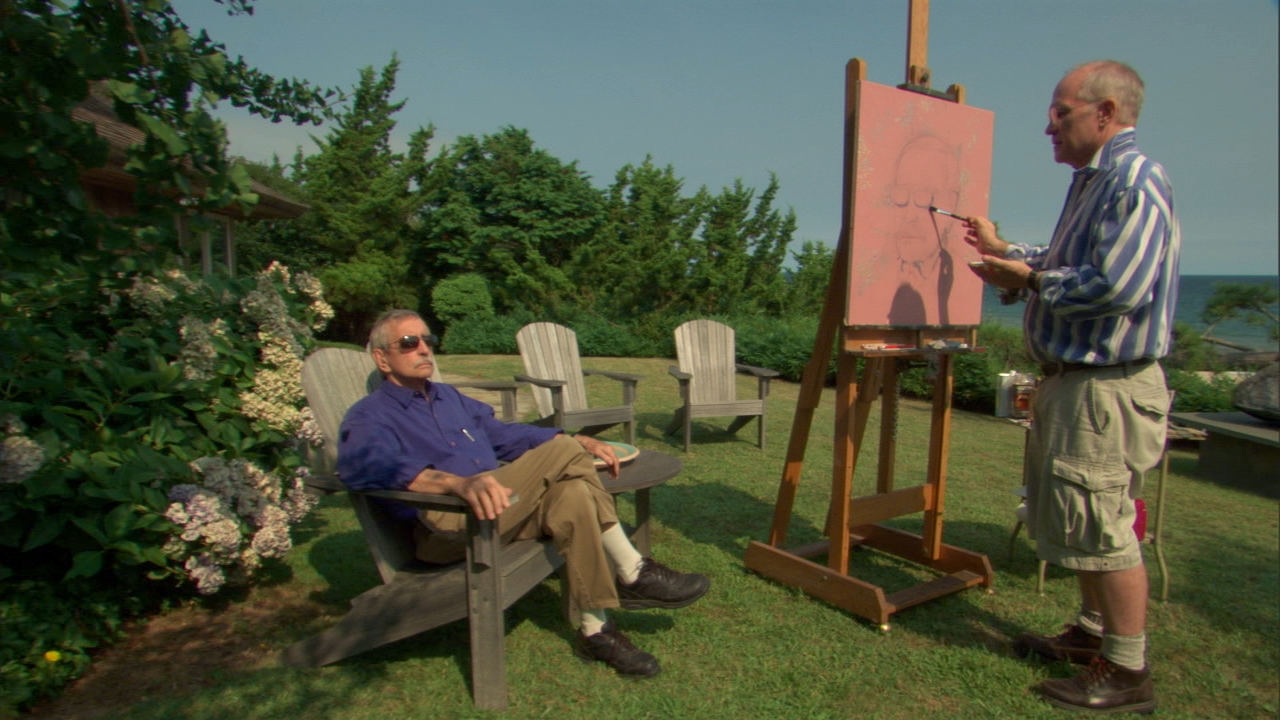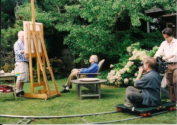 Riding on the New York subway one day, the men spied Albee sitting directly across from them. With trepidation, they approached. “We planned to try to get in touch with you, but since we saw you here, we thought we’d ask….” They dined with him and a mutual friend, composer and diarist Ned Rorem, who broached the subject of making a film. Numerous interviews were scheduled. Over a seven year period, Dowell and Kolomvakis met with Albee at his rural home in Montauk overlooking the Sound, where he talked casually at length about his life and career and beliefs while James Dowell painted his portrait.