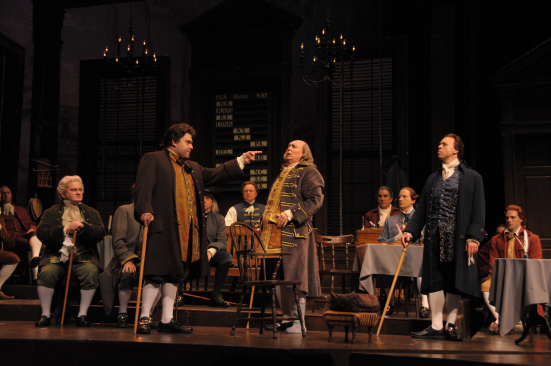 “Our do-nothing Congress isn’t worth a darn. All they do is sit on their rich, elitist butts. They squabble over petty issues, insult each other rudely, complain about the weather and refuse to deal with real issues making life tough for the average citizen.” Sound like a polite Facebook post about the 2012 Congress? An observer could very well have made those remarks, after spending an afternoon peering through an open window at the shenanigans of a decidedly “do-nothing” Continental Congress in Philadelphia in 1776. At the very least, the shocked observer would start with that premise if they sat through a performance of the Peter Stone and Sherman Edwards musical “1776”, playing at Lyric Stage in its Irving TX Carpenter Hall venue through November 4, 2012. Some things never change, politicians topping that list.
