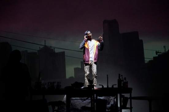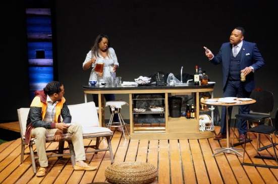 Dallas native playwright Regina Taylor’s new play Bread, in its world premiere as commissioned and produced by Water Tower Theatre at the Addison Theatre Centre, promises a tasty treat judging by the enticing scents wafting out from its dramatic oven as it opens. It’s a play you hope to sit back with, inhale deeply and savor. Sadly, it comes up a few slices short of a satisfying, full loaf as it unfolds. Its rushed, trendy 90 minutes, with no intermission, contains too many plot threads that emerge out of thin air with predictable result, as well as stereotypical characters that lack clear motivation or defined arc. The thrust set with revolve and partial moat, a display of technical wizardry, designed by Clare DeVries, adds a welcome depth of dimension to the Centre’s static main stage theatre void and draws the eye in. Unfortunately the special effects that finally arrive from this wizardry at play’s end are puzzling, high drama gimmicks that seem borrowed from some other show with no particular connection here. The show opens with a potent, hopeful lyricism built around the metaphorical description of “bread”. One waits and waits for this fragrant, vital metaphor to re-emerge and knead the ragged jumble of cobbled elements together. Alas it never returns, as the revolve spins and rain, not figuring into the script literally or metaphorically anywhere, pelts down from the heavens into the moat and onto part of the set at curtain. Not sure if revolve/moat/ rain are part of Taylor’s script in some other iteration or just a clever add-on by the production’s out of the area director, Leah C. Gardiner. Esteemed colleague and I turned to each other as one with bemused shrug. What’s the grand environmental gesturing all about? Poignant, dignified final moments turn into spinning, soggy ones.