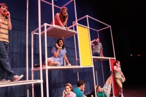 2) Level Ground Arts’ Poseidon An Upside Down Musical faced major challenges in its mounting: an action heavy show with twenty-seven actors on a minimally lit black box stage with next to no fly space and ongoing air conditioning problems and sight line challenges. Lively, clear, focused direction by Andi Allen and Bill Fountain plus a multi-talented, high energy cast made this an extremely fun show to attend, no matter how stuffy and hot the house or hard it was to see some of the action. It helped to have seen the 1970’s disaster movie upon which the musical was based, now something of a cult favorite with disaster aficionados.