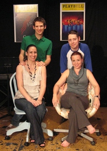 Watching Ohlook’s earnest, hyper-kinetic, bright, charming cast of four singing their hearts out bringing this Jeff Bowen/ Hunter Bell Tony-nominated Broadway success to life reminded me of the 1973 feat. It’s basically a parallel story line. Two aspiring New York performer/writers enter a musical theatre contest with a hodge-podge “show” about trying to write a Broadway-bound show with two female buddies. Their show, named [title of show] because they can’t think of anything else to call it, gets selected for performance at a regional festival and ends up on Broadway. No joke. No great orchestrated music, no smoke and mirrors or crashing chandeliers, a little gratuitous nudity, sprinklings of the f word, lots of sincere charm and pure, unadulterated guts. It’s great fun and the perfect venture for Ohlook’s bare bones black box style setting (the flying bugs add earthy atmosphere). The audience is so up close and personal with the performers, it feels like they’re helping them write the show. In a larger, more formal theatre setting the show can lose its personal warmth and verve. It’s saucy; it’s spicy; it’s nervy; it’s young people spouting a rich, modern vernacular while contemplating fifty years’ worth of musical theatre, some winners, some losers, and scraping up the guts as a friendly foursome to put one together, themselves, that makes it to the big-time. Wish I had photos to post, sigh.