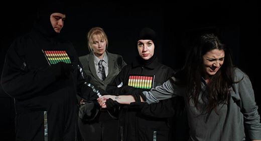 TOP PHOTO: L TO R — Robot (Ben Bryant), Woman (Carla Parker), Robot (Erin Singleton), Girl (Elizabeth Evans)